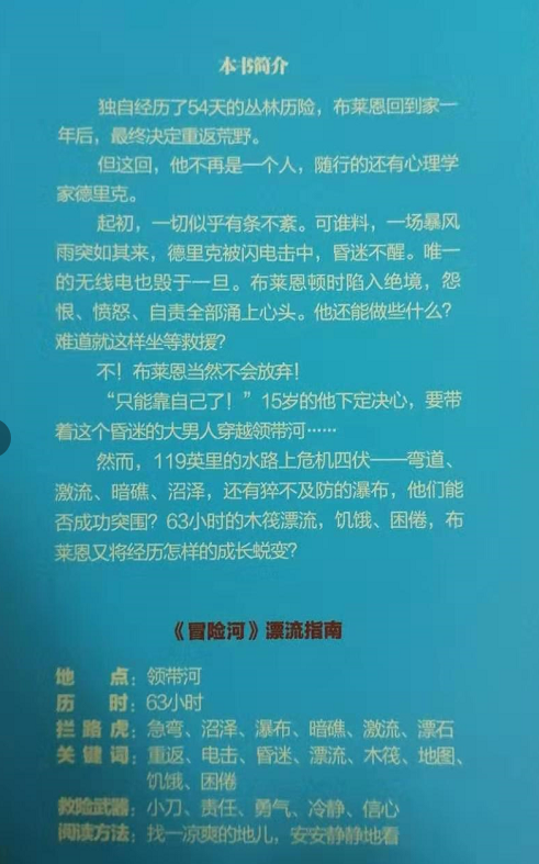 然而,119英里的水路上危机四伏——弯道、激流、暗礁、沼泽,还有猝不及防的瀑布,他们能否成功突围?63小时的木筏漂流,饥饿、困倦,布莱恩又将经历怎样的成长蜕变?