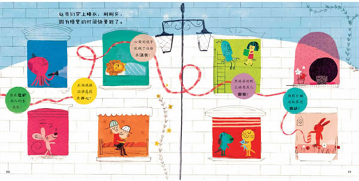 大爱这本书色彩丰富、生动可爱的插图。这本书能帮助孩子们识别和联系各种情绪,包括身体语言和面部表情。它能帮助孩子们发现,一种情况或一种情境能引起人们不同的情绪波动。例如,去上学这件事可能会让有的人感到焦虑,而另一个人则感到兴奋,还有的人是害怕、惊讶、沮丧。对于学会表达一个人的感觉,这是很好的开始。