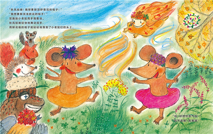 秋天来了,秋风姑娘把她的帽子店开在山丘的一棵大树上。这些帽子好奇特,都是用山花、野果做成的。动物们一个接一个地挑走了自己喜欢的帽子。这时,兔子姐妹来了,看着树上仅剩下的两顶帽子,姐妹俩同时喜欢上了一顶颜色鲜艳的,这顶帽子该给谁呢?兔子姐妹会因为一顶帽子反目吗?不一会儿,熊奶奶也来挑选帽子,可是帽子已经都被挑走了,熊奶奶冻得打起了喷嚏,这可怎么办呀? 这本书通过兔子姐妹争抢同一顶帽子的故事让孩子们客观地看到兄弟姐妹之间的矛盾是怎样产生的,帮助孩子们思考如何和兄弟姐妹相处,进而思考在集体中如何与他人相处的问题。