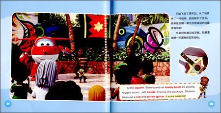 “超级飞侠有声图画故事书(双语版)”共8册,包含16集动画片内容。它讲述了运输飞机乐迪和他的小伙伴们为世界各地的小朋友送包裹,并帮助他们解决难题、实现梦想的故事。每一个故事里,乐迪都会去不同的国家或城市,展现世界的多元文化。