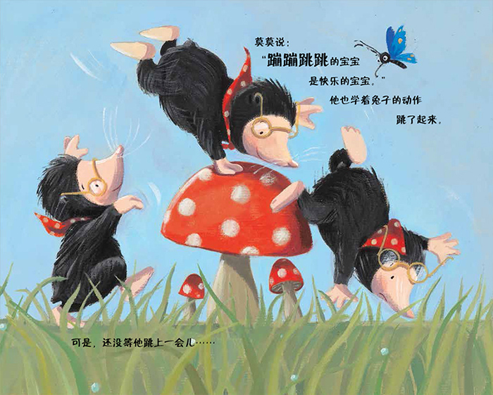 《莫莫当爸爸了》鼹鼠莫莫想找到最能让他的宝宝们感到快乐的方法。他观察农场上的其他动物。看他们是怎么做的。他学兔子蹦蹦跳跳,学鸟儿拍翅膀,学鸭子玩水……可是最后,莫莫发现,他的宝宝们只需要一样东西,而且这样东西莫莫不用去学,也可以给他们很多很多。