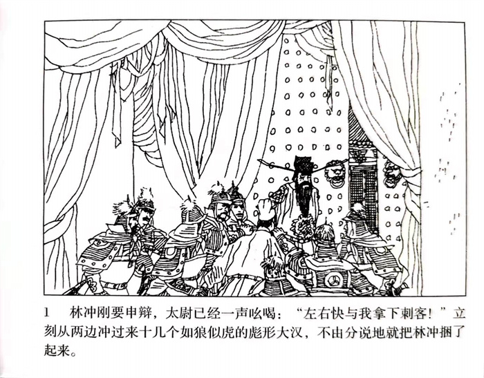 林冲被诬陷行刺,案定急发配沧州。高俅爪牙命解差在路上杀害林冲,以报私仇。幸得鲁智深一路暗中保护,在野猪林救林冲脱险。