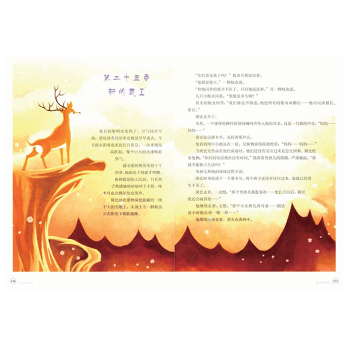 《小鹿斑比》这部作品讲述的是一只小鹿成长的故事,是一部充满爱与温馨的童话。 童话从小鹿蹒跚学步讲起,讲述了它与森林里的小伙伴们经历季节迭换,在一点点了解外部世界的同时,心灵和情感也在不断地受到洗礼和冲击,对动物自己、大自然和屠杀他们的人类进行着艰难的认识和思考。作者笔触极其细腻,字里行间流淌着充满伤感的观察,通过对朋友之爱,亲人之爱,动物与大自然之爱的描述,必将触动读者心中那一方*温柔的角落。
