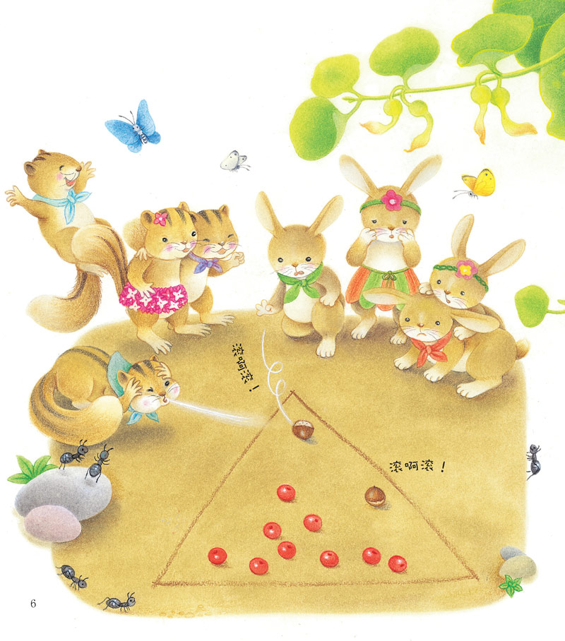 哇,田野里怎么这么热闹?原来小动物们都在比多少:松鼠的樱桃多还是兔子的栗子多呢?青蛙的苇秆儿多还是刺猬的苇秆儿多?小田鼠的陀螺多还是小鼹鼠的陀螺多呢?