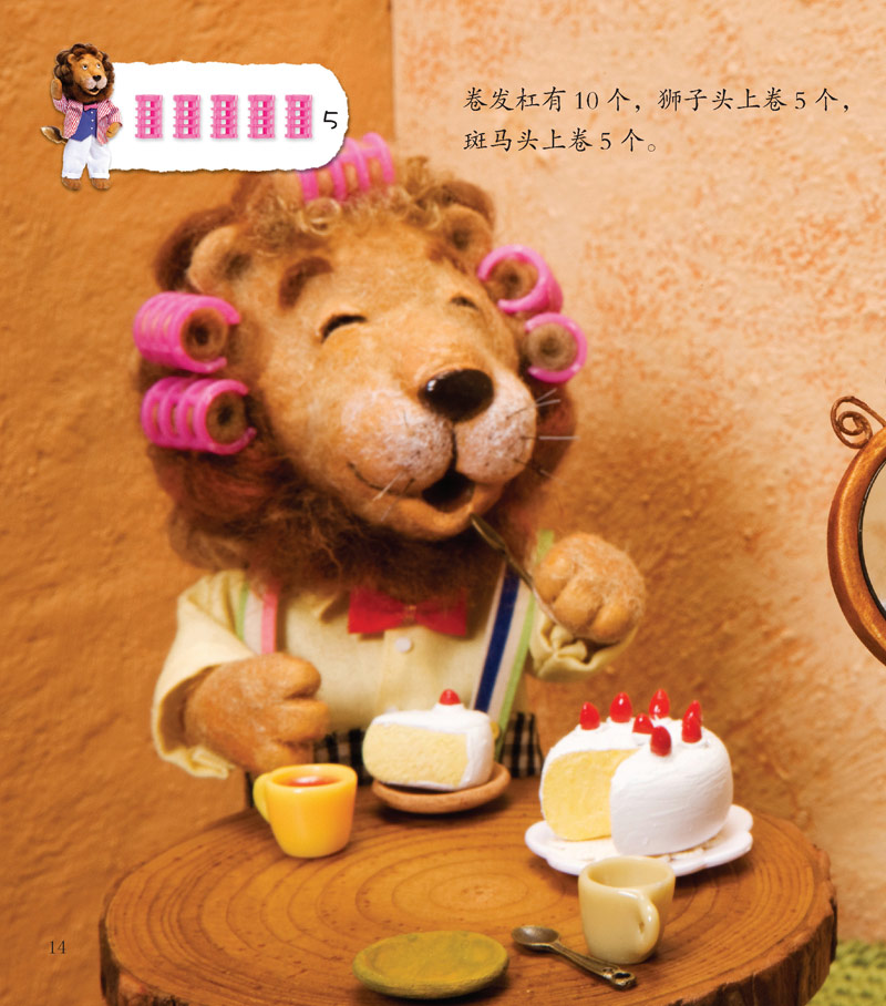 大猩猩要举行结婚典礼了!森林里的小动物都想像狮子那样,弄一头漂亮的卷发参加婚礼。于是,大家都接二连三地找狮子借卷发杠,可是,狮子的头上必须得有10个卷发杠,要不然就不会有字漂亮的卷发了。狮子该怎么办呢?