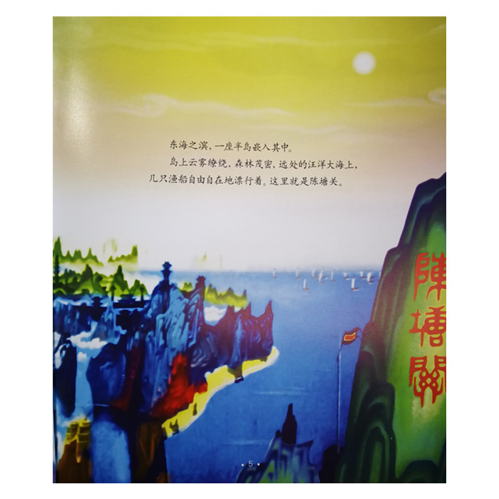 岛上云雾缭绕,森林茂密,远处的汪洋大海上,几只渔船自由自在地漂行着。这里就是陈塘关。