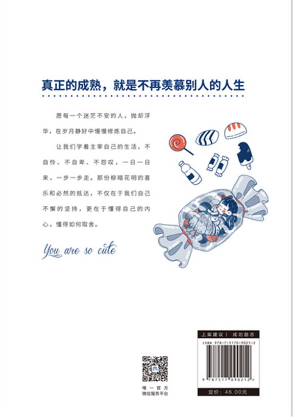 长得漂亮是天生的,但选择变得越来越漂亮却由你决定。拥有一直爱、持续美,内在成长,无畏向前的能力,就是“可爱”的新定义。 永远不要灰头土脸地面对这个世界,你要相信,你配得上所有的好。愿每一个迷茫不安的人,抛却浮华,在岁月静好中慢慢修炼自己。 本书描述了年轻人在个人成长、生活磨砺、职场打拼等方面的常见问题,剖析了他们不可避免的焦灼、失望、孤独、彷徨、迷茫等心理状态,并提供了抚慰心灵的哲思妙语和可供借鉴的指导方法,以期帮助他们改变现状,让他们学会拒绝潦草的生活方式,每天都活得光鲜靓丽。