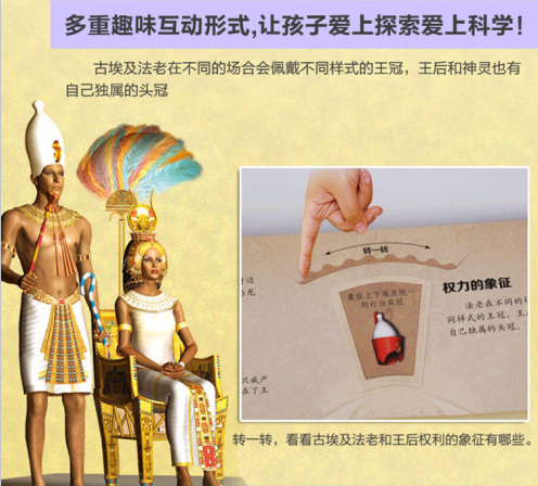 大揭秘 *酷3D儿童立体百科《神秘古埃及》,带你领略不一样的古埃及。丰富有趣的互动设计,带你探索神秘的金字塔、恢宏的古神庙、充满财宝的幽深陵墓、以及充满奇幻色彩的神话国度!