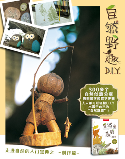 也因为这个原因,非常高兴一峰的《自然野趣D.I.Y.》在大陆出版,这当中凝结着他多年自然收集与创作的方法和心得,在这本书里,不起眼的一片落叶、一段枯木、一块石头,都可以是自然艺术的源泉和珍宝,在一峰的巧手之下,经过简单的粘贴、叶拓,自然物都可变成富有生命力的艺术作品,而这些其中不仅仅是艺术,还包含着他对大自然的情感与认知。这种自然物的收集和创作能让孩子以及他们的父母从自然中获得乐趣和启示。