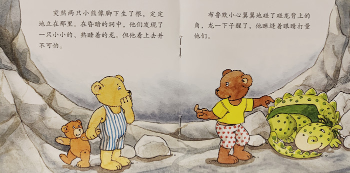 雨下了一整夜。大清早布鲁默擦着嘴巴爬起来,一滴水掉到他鼻子上。“鲁默,瞧呀,从洞顶上滴下的水!”“你在做梦吧。”鲁默睡眼惺忪地嘟囔着。“不,”布鲁默着急地说,“洞顶漏啦!”