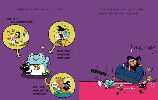 所有的巫婆都害怕小孩,因为他们会无休无止地吵闹。巫婆阿丽也一样,但是她养了三只小宠物。黑猫巴特是阿丽小时候的生日礼物。癞蛤蟆乌拉拉是阿丽中学毕业的纪念品。蜥蜴喳喳是阿丽不久前收养的小可怜。三个小家伙一见面就吵得不可开交,整天打打闹闹。家里那真是鸡飞狗跳。日子一天天鸡飞狗跳地过着,有时候出离愤怒的阿丽会夺门而出,出去躲躲清闲。有一天,阿丽实在忍无可忍,就念了一句咒语,将三个小家伙变成了雕像。三个成天打闹的小家伙,一动不动。*天,阿丽终于松了口气;第二天,阿丽心情大好;第三天,阿丽觉得实在太轻松了。但是第四天,阿丽感觉有点空虚。此后好几天,感觉越来越糟糕……结果会怎么样呢?