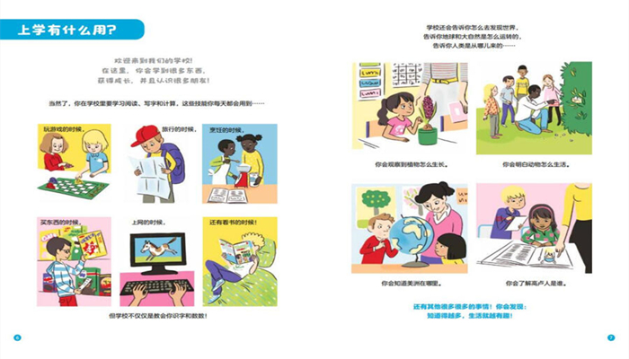 从幼儿园到小学,孩子需要面对一个不同的环境、更大的挑战。小学校园和幼儿园有什么不同?除了上课,在学校里还会做什么?怎样在学校里交到新朋友?怎样自己收拾书包?2500年前的学校什么样?沙漠里的小孩怎么上学?还有,上学究竟有什么用? 趣味科普校园生活,实用贴心入学指南。帮助孩子为即将开始的小学生活做好准备,以积极充分的心态迎接小学生活。