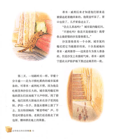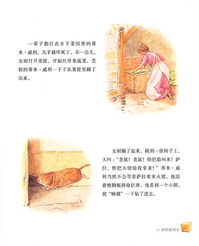 城市鼠约翰尼出生在碗柜里,而田园鼠蒂米·威利出生在菜园子里。蒂米·威利是只农村的小老鼠。有一次,他一不留心钻进了一只装满蔬菜的筐子,结果被带进了城。菜农每周都要把蔬菜装进一个大筐子,请搬运工送一趟蔬菜进城。