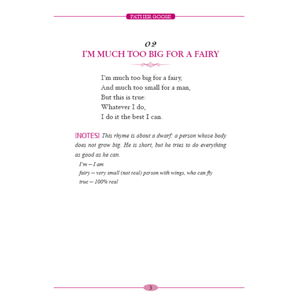 本书是与《鹅妈妈》配套的另一本经典英文原版儿歌与韵律诗,是西方一直流传下来的经典名著,在西方家喻户晓。本英文朗读版将给中国孩子带来学习英语的乐趣,让他们在大人的带领下,吟颂这些经典的英文儿歌,同时也可以学习英语发音,了解西方的文化背景等知识。