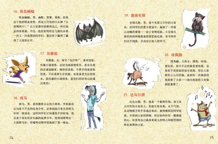 大口,又闯进了兔狲的圈套中;施巧计冲出了吸血蝙蝠的包围圈,同学们雨夜狂奔终于脱险;刚救下可怜的皇绢毛猴,又被吃素的鬃狼吓的魂飞魄散;土豚无意中惹恼鼩鼱可是真难缠,最后还是非洲象校长救了全班……