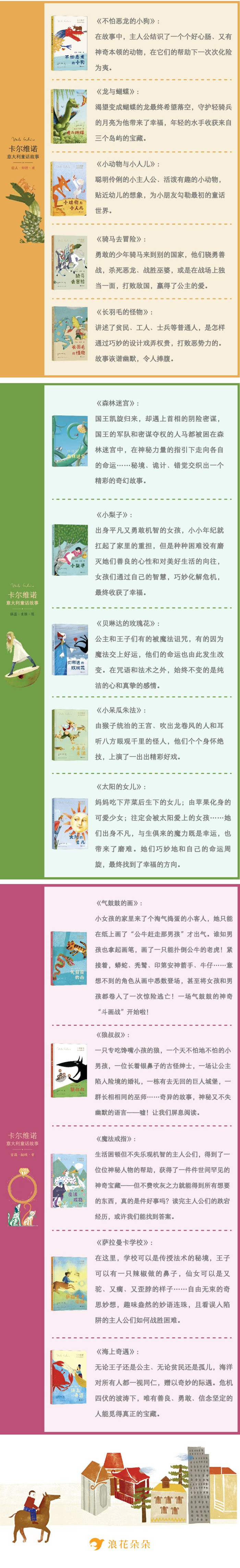 “卡尔维诺意大利童话故事”系列丛书是专门为孩子精心编排制作的“意大利童话故事集”,旨在为国内的少年儿童读者提供体现不一样文化传统的经典文学读物,领略世界范围内人类遥远童年的精彩传奇。