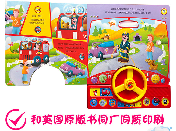 图书变成驾驶室,方向盘、控制台一应俱全。11中种逼真有趣的交通工具音效。轻松有趣的冒险故事,一边阅读,一边认知不同交通工具的用途。