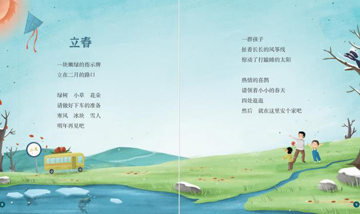浪漫而智慧的华夏子孙,在光影和草木之间发现了岁月的痕迹,在劳作与气候之间,倾听大地的语言,发现大自然的密码,于是有了二十四个节气,每个节气分成三候。一年 12 个月被切割成 24 个节气、72 候。作家丁云依据每一个节气的特色,结合孩子会在意的知识要点在每一个小格子里填下了一首诗,还为诗搭配了适合诗歌的导读。让整个节气格子充满诗意和诗意的理解。这本书不仅是一个二十四节气的诗集,同时也是一个手账本,在每一个章节后面都有不同类型的互动环节。可以收集节气特有的植物素材,也可以通过绘画、语音、或者文字记录阅读本书读者的心情和感悟。
