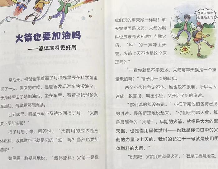 “逐梦太空的少年”系列是一套普及航天知识、展现中国航天成就、弘扬航天精神的少儿科普图书,主题涉及火箭、空间站、航天飞船、嫦娥探月、卫星、深空探索等。书中巧妙设定了一个虚拟的火箭机器人(小征),它带着两个主人公(福子月和魏星辰)展开了一系列身临其境般的航天探索之旅,每个故事中还会穿插相关故事情节和知识点的趣味漫画,故事后还会附上大场景的航天科普页,以实景还原的形式介绍了相关宇审知识、航天故事、航天器,如长征系列运载火箭及载人航天知识、中国空间站及太空生活知识、中国探月工程及月球知识、人造卫星工程及祝融号火星探测器等。同时还对我国未来航天的发展做了畅想,如长征九号火箭的研发、载人登月的可能方案、如何建造月球基地及登陆火星的计划等。《火箭冲霄》是其中一本,全书以火箭为研究对象。