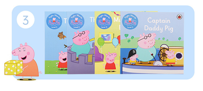 跟着佩奇学高频单词,词汇、口语双提升。 20册故事绘本(分为5个等级,每个等级含4册绘本)。 透过故事把高频词代入场景、句子中,反复练习记忆,孩子自然而然就能掌握高频词。 20个扩展小游戏,让孩子边玩边记。