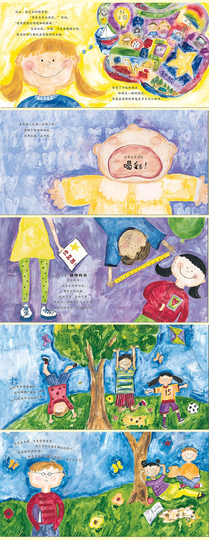 本书是一本3-6岁儿童阅读的洋溢着浓情爱意的绘本,内容讲述了每个孩子来到这个世界都是独一无二的。你有自己的模样,性格,爱好,想法,梦想,快乐,幸福,伤感等等属于自己独一无二的东西。从头到脚,你确实很特别,你不断的成长变化,却与众不同,放眼望去,世上再也找不出另一个一模一样的你。书中文字清新自然,图画色彩温馨,让小朋友在阅读中认识自我,收获信心,以正确的心态面对生活的不如意,将它们化为成长的乐章。同时,本书也是亲子共读的优秀读物,搭建了父母与孩子沟通的桥梁,有利于给孩子营造良好的成长环境,因此本书具有很高的阅读和出版价值。