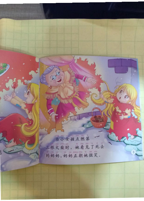 讲述的是一个在圣诞夜卖火柴的小女孩的悲惨命运。因为没有卖掉一根火柴,小女孩一天没有吃东西。她又冷又饿,她擦亮了根火柴,看见了喷香的烤鹅;她擦亮第二根火柴,看见了美丽的圣诞树;她擦亮了第三根火柴,看见了久违的外婆,她想让外婆留在自己身边,擦亮了一整把火柴。然而当火柴熄灭的时候,这所有的一切都不见了,小女孩就是这样在圣诞之夜悲惨地死去,没有人知道她在生前后一刻看到的美好情景。