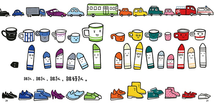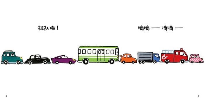 好故事都是发自心底的呐喊。“集合——排队啦!”以一句口令开头,牢牢锁住宝宝的阅读兴趣;口语化的文字,儿童视角的解读,融入形象的拟声词,讲述宝宝心里的故事。