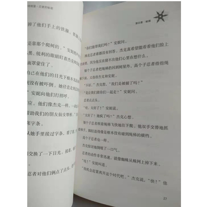 于是,他们乘着神奇树屋来到古代日本,遇到了神秘的黑衣忍者和功夫深不可测的忍者大师,还被追捕忍者的日本武士包围。