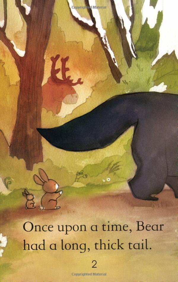 Based on a Native American folk legend, this wonderful book tells the story of how Bear lost his tail. Beautiful, original illustrations bring the story to life. It features easy-to-read text, with fun comprehension puzzles at the end. It is a charming addition to the "Usborne First Reading" series, developed in consultation with Alison Kelly, Principal Lecturer and reading specialist at the University of Roehampton.