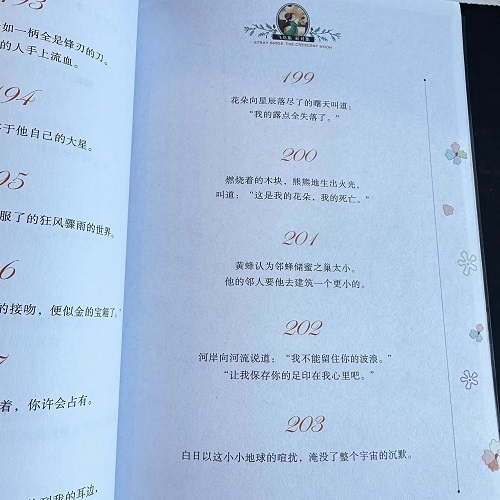 本书收录了泰戈尔*代表性的诗集:《新月集》《飞鸟集》,并汇总了泰戈尔其他优美的诗篇,如《采果集》等,附录中还节选了郑振铎所写的《泰戈尔传》。“我做云,你做月亮。我用两只手遮住你,我们的屋顶就是青碧的天空。”《新月集》不是写给孩子的散文诗,而是描写孩子童真的诗歌集。泰戈尔用优美的诗篇把我们带到一个纯洁的儿童世界中,勾起我们对童年的美好回忆。《飞鸟集》是泰戈尔的代表作之一,也是世界*杰出的诗集之一,包括300余首小诗。很多我们耳熟能详的小诗,如“生如夏花之绚烂,死如秋叶之静美”都出自该诗集。泰戈尔喜欢将哲理蕴含在自然中,在他的笔下,一只鸟、一朵花、一颗星,仿佛都被赋予了人性,充满了真理和智慧。