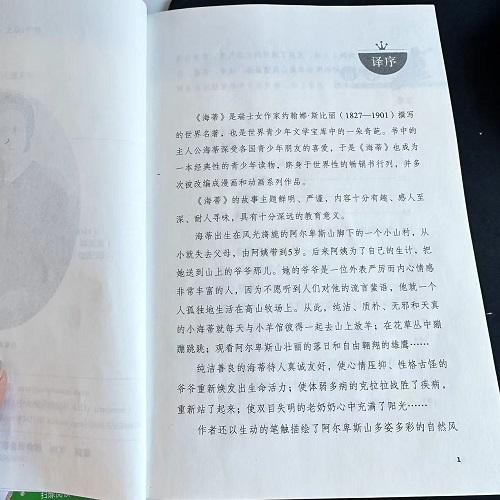 《海蒂》是一部以情动人的文学名著,在这部书里,始终贯穿着一个浓缩于海蒂身上的“爱”的主题,作者通过优美的笔触,把一个无比可爱,充满爱心的海蒂栩栩如生地展现在读者眼前,使我们仿佛看到了一个爱的天使、爱的化身。海蒂虽然出身贫寒,但却有一颗金子般的心。她的人格魅力,她的纯真善良,深深地感染着周围的人,使饱经磨难、离群索居的爷爷重新回到人们中间,对生活有了新的认识和感悟,在帮助他人的过程中实现着生命的价值;此外,长年与轮椅相伴的富家少女克拉拉,贪玩厌学的牧羊娃彼德,陷于丧女之痛的医生,在贫困和黑暗中艰难度日的瞎眼老奶奶,他们的生活都在海蒂的影响和帮助下发生了这样或那样的变化,变得美好并充满希望。