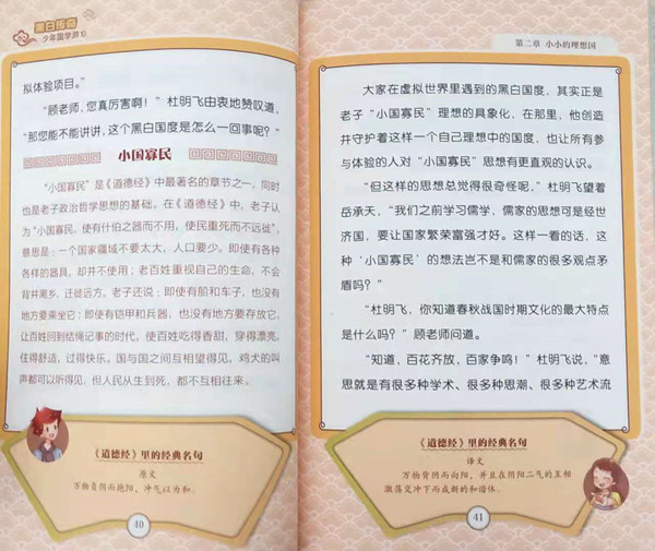 国学社的成员们去参加“《道德经》文化大展”。在展览中,他们不仅看到了许多翔实的书面记载和丰富的史料,主办团队还采用了最先进的技术,运用声光电等科技原理对展览进行了立体而有趣的设计,让参展者在身临其境下了解《道德经》这一国学经典书籍。国学社成员在参展时,在虚拟场景中参与了圣人评选、“黑白战争”等事件,深深体会了《道德经》中有益于人生与成长的道理,得到了非常大的收获。