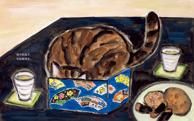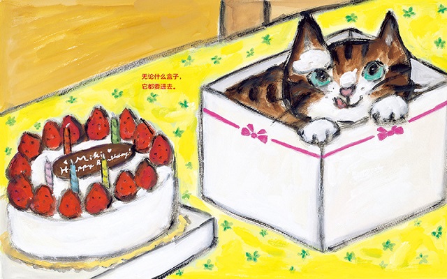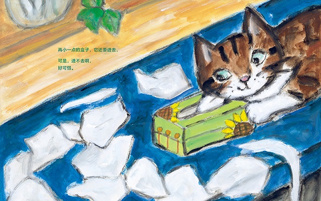 从盒子里钻出圆圆的脑袋、探出毛茸茸的爪子,一副得意洋洋又心满意足的样子,家里有猫的人,看到这个封面一定会会心一笑。