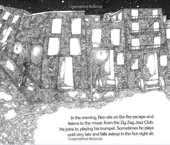 The story of Ben is fiction, but it could be the story of morethan one jazz musician who grew up in the twenties. Using theart-deco style of the period, Rachel Isadora not only captures thepoignancy and yearning of a youthful talent, but in page after pageof striking art seems to convey the very sound of music.