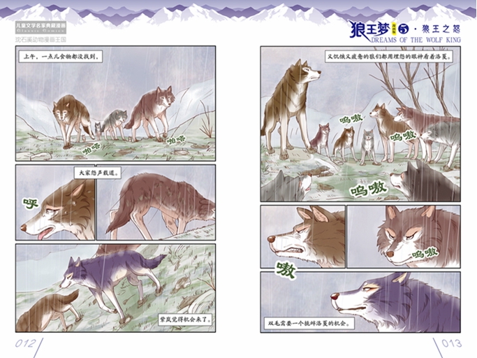 母狼紫岚开始了独自抚养四只狼崽的生活,狼崽们茁壮成长着。小狼黑仔被紫岚指定为培养成狼王的对象,所以紫岚总是先给黑仔喂奶,黑仔吃饱后才能轮到剩下的小狼。在这种刻意培养之下,黑仔的胆量与日俱增,直到竟独自跑出了狼洞,而紫岚竟默许了这种冒险的举动。灾难随之降临,一只凶猛的*叼走了黑仔,紫岚悲伤极了……但狼王梦没有熄灭,轮到小狼蓝魂儿去实现黑桑的遗愿了。冬季降临,紫岚一家回归狼群。蓝魂儿遇到了劲敌黄犊,黄犊多次夺走蓝魂儿的食物,直到蓝魂儿忍无可忍,与黄犊展开了决战,*终蓝魂儿惨胜,却感受到了胜利者的荣耀。紫岚为了培养蓝魂儿,狠下心来拒绝了大公狼卡鲁鲁的情谊。蓝魂儿尾追一头牛犊却因受挫而中途放弃,这一举动惹怒了母亲紫岚,紫岚痛打了蓝魂儿,蓝魂儿委屈极了……漫画改编在遵从原著小说基本故事脉络和精神内涵的前提下,融入了漫画所需要的要素,同时对原著中适合用漫画呈现出来的段落进行了改造,丰富了漫画版的故事性和趣味性。