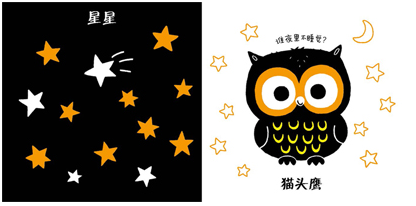 小宝宝对对比色特别敏感,特别是黑白对比——有什么比白天和黑夜、光明和黑暗对比更强烈的呢!这本书非常特别又非常简洁,所有的形象都特意设计成黑白对比的图案。宝宝在爸爸妈妈的陪护下翻看这本书,可以在这个方寸世界里认识物质、形状和图案。