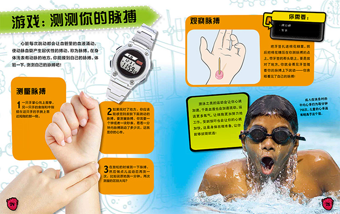 以心脏为主题,介绍了心脏的构成部分、功能机制、运作原理,并提供了4个游戏和1个实验,如测试肺活量、测量脉搏等,让小读者可以全面深入地了解心脏的奥秘。