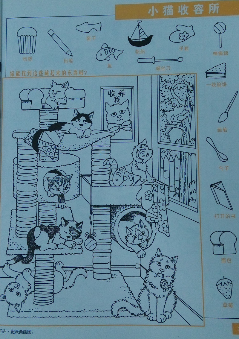 2. 观察能力训练。在一幅结构复杂丰富的图片中找到多件指定物品无疑需要格外敏锐的观察力。