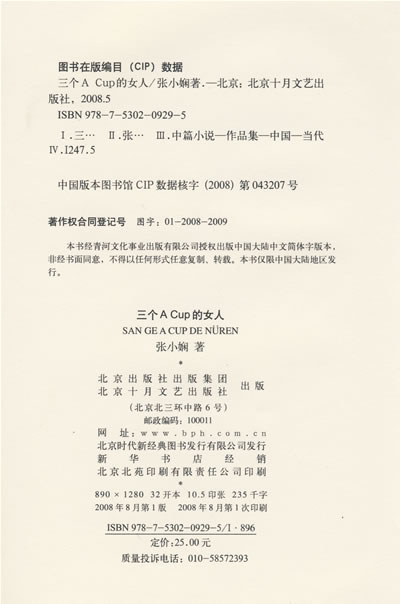 这一次,北京十月文艺出版社为我出版一套六本的《张小娴小说精选集》,收录了我十六本小说,它们是:《面包树上的女人》(收录《面包树上的女人》《面包树出走了》)、《三个ACUP的女人》(收录《三个A CUP的女人》《再见野鼬鼠》)、《荷包里的单人床》(收录《荷包里的单人床》《三月里的幸福饼》《雪地里的蜗牛奄列》)、《蝴蝶过期居留》(收录《那年的梦想》《蝴蝶过期居留》《魔法蛋糕店》)、《我们都是丑小鸭》(收录《我们都是丑小鸭》《刻骨的爱人》《流波上的舞》)、《情人无泪》(收录《卖海豚的女孩》《离别曲》《情人无泪》)。