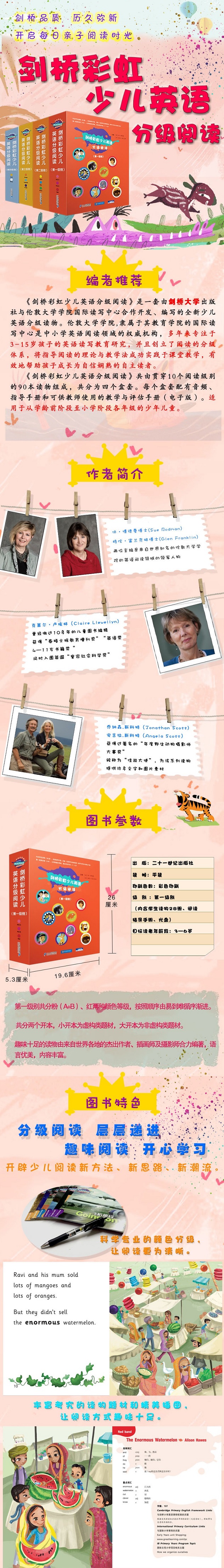 这是一套由剑桥大学出版社与伦敦大学学院国际读写中心合作开发、编写的全新少儿英语分级读物。伦敦大学学院(UCL)全球排名一直保持在前10强(英国前四)。隶属于其教育学院的国际读写中心是中小学英语阅读领域的权威机构,多年来专注于3-13岁孩子的英语读写教育研究,创立了阅读的分级体系,并将指导阅读的理论与教学法成功实践于课堂教学,有效地帮助孩子成长为自信娴熟的自主读者。