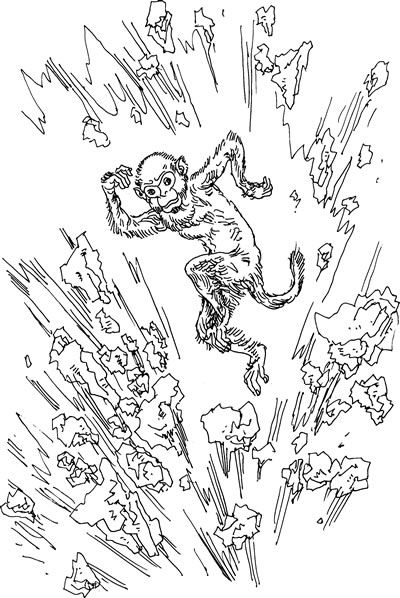 一天,石头突然裂开,从里面蹦出一个圆球状的石卵,从山上滚下来,遇风后变成了一只石猴。虽然是石猴,却五官俱全,四肢齐备,不一会儿就学会了行走,身手矫健。而且,他的眼睛还发出耀眼金光,直冲云霄。
