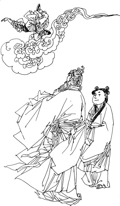 金光一直射到了天庭里,玉皇大帝坐在灵霄宝殿,不知发生了什么事,于是命令千里眼和顺风耳赶到南天门,观察人间的情况。