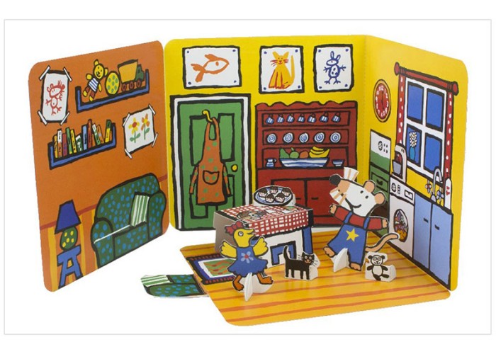 来参观Maisy的房子吧! 一个丰富多彩的故事引出了一个弹出式游戏场景,包括以Maisy和她的朋友为主角的弹出式作品。Maisy的粉丝们被邀请加入这只友好的老鼠的行列,因为她每天都有自己的生活习惯:早上起床,在厨房做早餐,画画,和Tallulah喝下午茶。然后,小读者们可以在Maisy房子的弹出式游戏装置的帮助下,发挥他们的想象力,其中有四个可移动的人物--Maisy、小黑猫、熊猫和Tallulah。谁想在厨房里喝茶吃饼干?