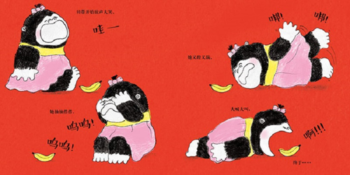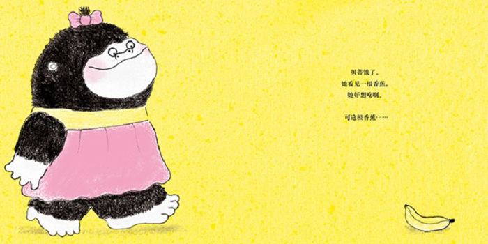 故事简单、贴近生活。安东尼用黑色、黄色以及粉红色,就画出我们身边刚学剥香蕉吃的小孩着急跺脚的模样。 ——《纽约时报》