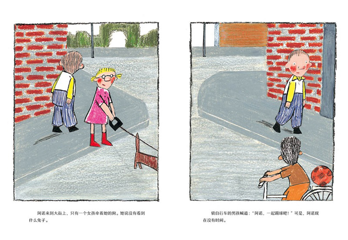 和我看过的许多图画书中的主角似乎有些不一样。阿诺的背总是微微驼着
