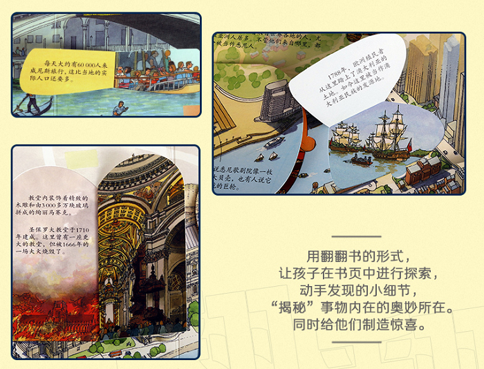 1.每册都有超过50张精美的翻页,带领小朋友自己动手探索丰富的百科知识,发现其中的奥秘!