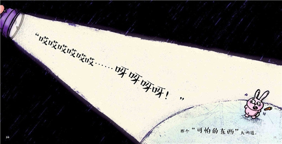 《好黑好怕》——爱是我们在一起 小怪兽阿蒙非常害怕一个人睡。在一个漆黑的夜里,躺在床上的小怪兽听到楼下传来可怕的脚步声。阿蒙想象着怪兽的样子,但是越想越害怕。最后他决定不再躲下去了,他要看看到底是什么东西在黑夜里发出声音。是什么?哦,原来是同样害怕一个人睡的小兔子。就这样,阿蒙和小兔子一起度过了黑黑的夜晚,但是他们不再害怕了。