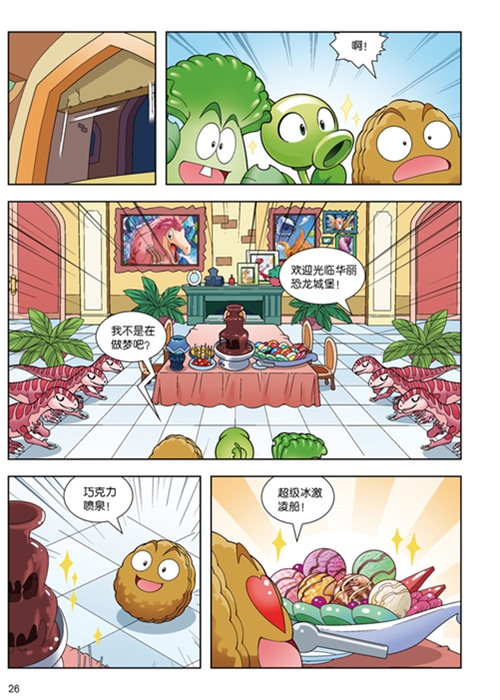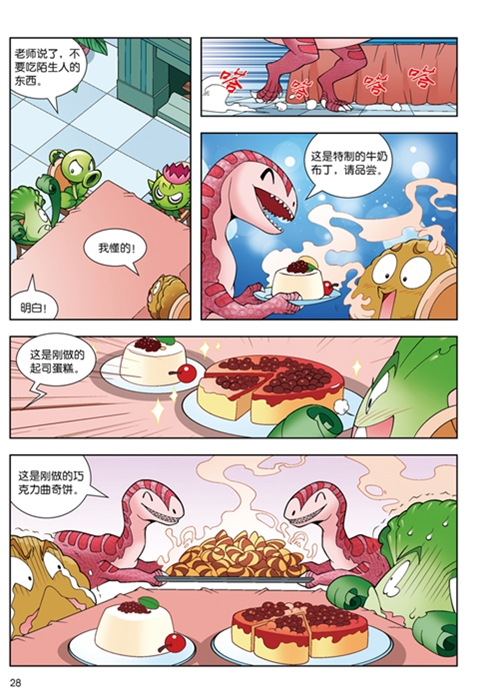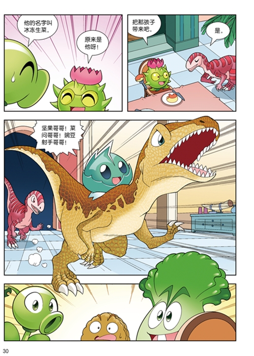 《恐龙与机械怪客》是“植物大战僵尸2·恐龙漫画”系列图书中的一册,以植物大战僵尸游戏中的角色和侏罗纪的恐龙为主角,讲述了一个关于友情和成长的故事。由于冰冻生菜在高坚果家暂住,十分受高坚果疼爱,坚果便赌气把他扔到了郊外的森林里。小伙伴们得知后,严厉批评了坚果,决定与坚果一起去森林寻找失踪的冰冻生菜。没想到在森林深处,他们发现了一座华丽的恐龙城堡。城堡的主人导向蓟提供了美味的食物和新奇的玩具。坚果和小伙伴们在愉快的玩耍中,不知不觉掉进了导向蓟设下的“热情陷阱”。原来,导向蓟是个十分孤独的科学家,想把坚果和小伙伴们永远留在城堡里陪伴他。就这样,在导向蓟控制的机械恐龙的追捕下,坚果和小伙伴们开始了一场森林逃亡大冒险。