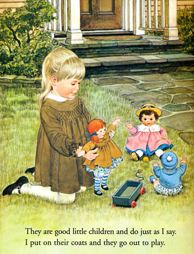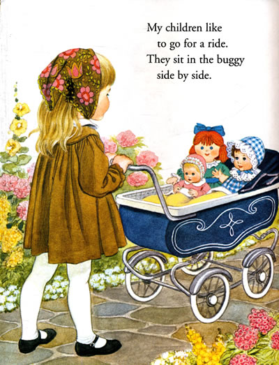 THE "LITTLE MOMMY" in this story is an adorable little girl. We spend the day in her charming company as she cares for her dolls, treats their ills, gives them a tea party, feeds them dinner, and puts them to bed. Beautifully illustrated, this book has a timeless feel.