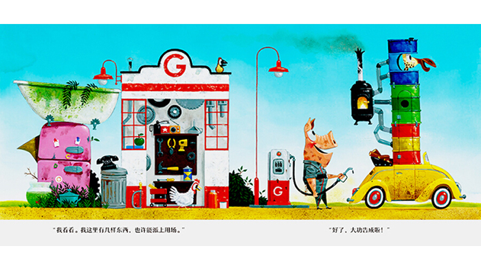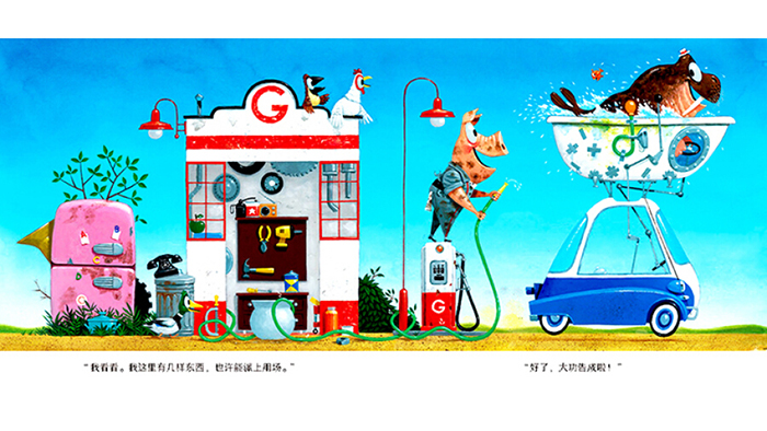 《贾斯的修车厂》——开动脑筋,转变思维。聪慧的脑袋和助人的热情让人生充实而幸福!热心肠的贾斯开了一间修车厂,今天他又迎来了一群苦恼的客人——嫌座位太小的犀牛、在敞篷车里冻得发抖的长颈鹿、皮肤快要被太阳晒焦的海象,还有马上要中暑的企鹅……贾斯的修车厂里堆满了看似毫无用处的废品,他用这些废品为每一位客人量身改造汽车,让不起眼的物品发挥奇妙作用! 这是一本充满趣味性的绘本,固定的场景,不断变化的细节,考验孩子们的眼力,同时可以开动脑筋,发现不同动物的特点,一起变废为宝。